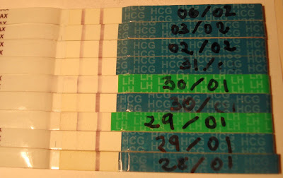 - Cuando me he hecho test de ovulación días antes de la regla, en ciclos que no han acabado en embarazo (obviamente, si no habría más de un bebito en este blog), no he obtenido positivos pero tampoco negativos rotundos.