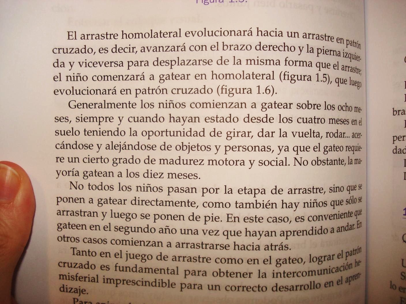 De este último trozo que os extracto me parece interesantísima la explicación que dan de cómo evoluciona el gateo, primero homolateralmente y después en patrón cruzado. A esto me refiero cuando digo que me gusta entender el fundamento de las cosas.