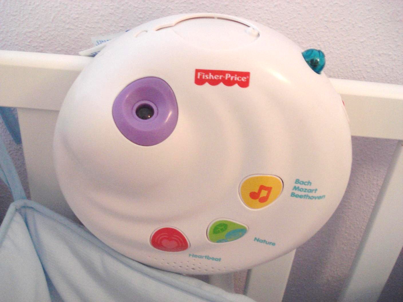 Para mi hija escogimos uno similar, también de Fisher Price pero de la colección Rainforest. No tenía proyección sino más bien una iluminación suave como de estrellitas que no usamos mucho pero igualmente fue un aparatito de muy buena calidad, que mi hija disfrutó mucho, con unos muñequitos suaves y coloridos que se quedaba feliz mirando durante mucho rato. También tuve el mismo problema para sostenerlo en la cuna, fue lo único que no me gustó.