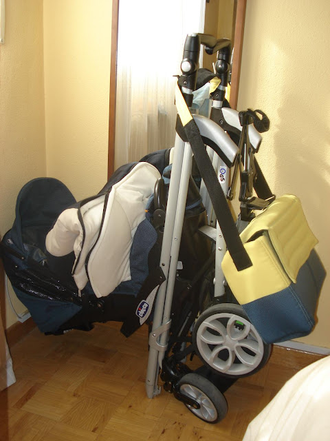 Y la silla no me acaba de convencer. Es verdad que se puede poner mirando hacia la madre, algo que tuve muy en cuenta, pero la veo estrecha y pequeña. Así que no me cabe la menor duda de que dentro de un tiempo compraremos una silla ligera de paseo, que se pliegue mejor y pese menos.