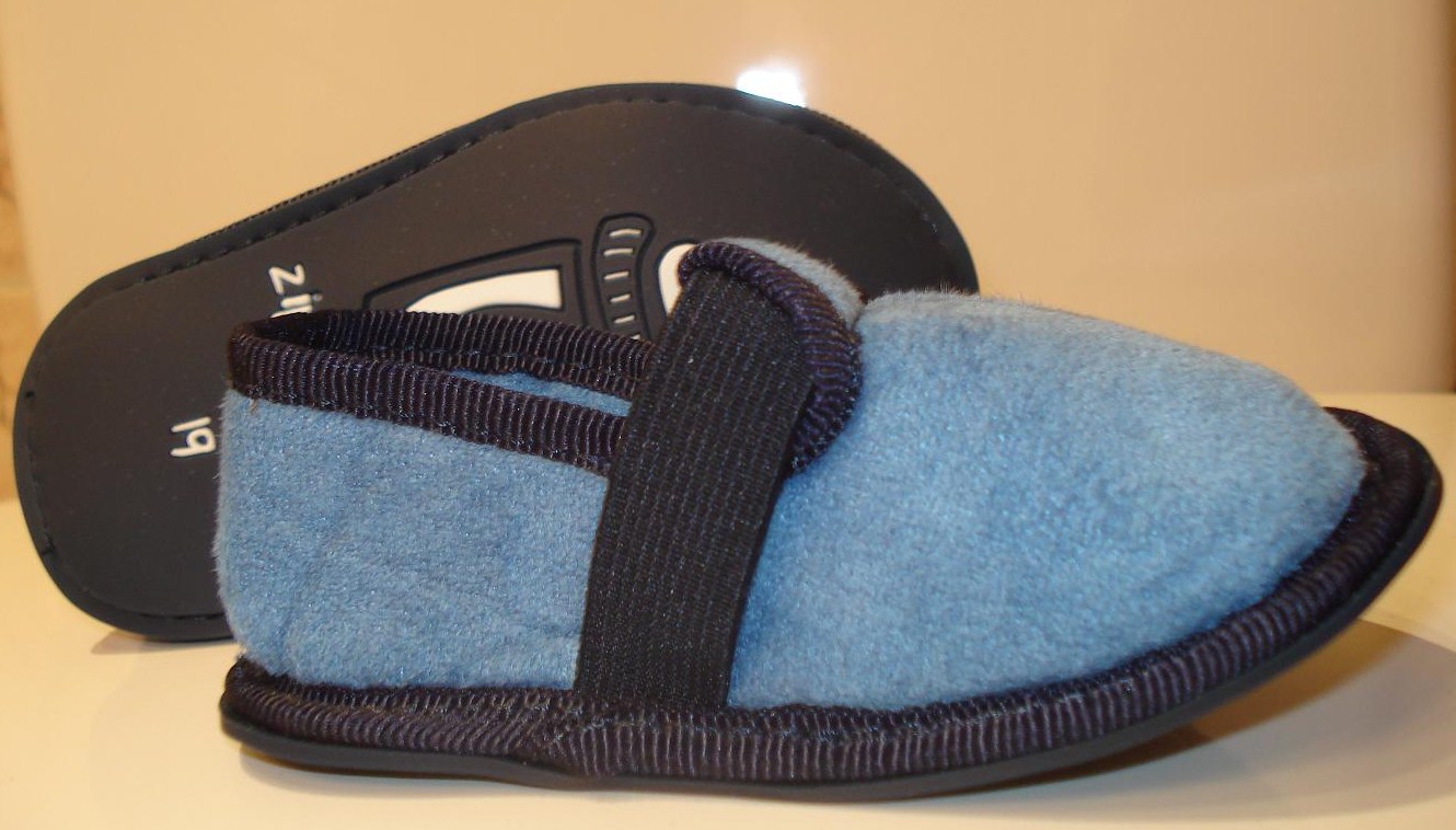 Sólo en el Corte Inglés he encontrado esta marca de zapatillas. Me gustaron mucho por  ser muy suaves, tener cremallera y porque al ser botita son muy fáciles de poner pero algo más complicadas de quitar sin desabrocharlas. Eran caras, creo que 18 euros, pero son las que estoy usando actualmente y estoy bastante satisfecha con ellas, aunque les pongo un par de peros. El primero, que son un poco estrechas en la zona del puente y del talón, su pie gordito necesitaría una horma más ancha. Y la segunda pega es la parte del tobillo, donde abrocha la cremallera, también le queda algo justo. Quizá debería haberle comprado un nº 20 en lugar de un 19… o quizá es que la horma que tiene no sea la más apropiada para su pie.