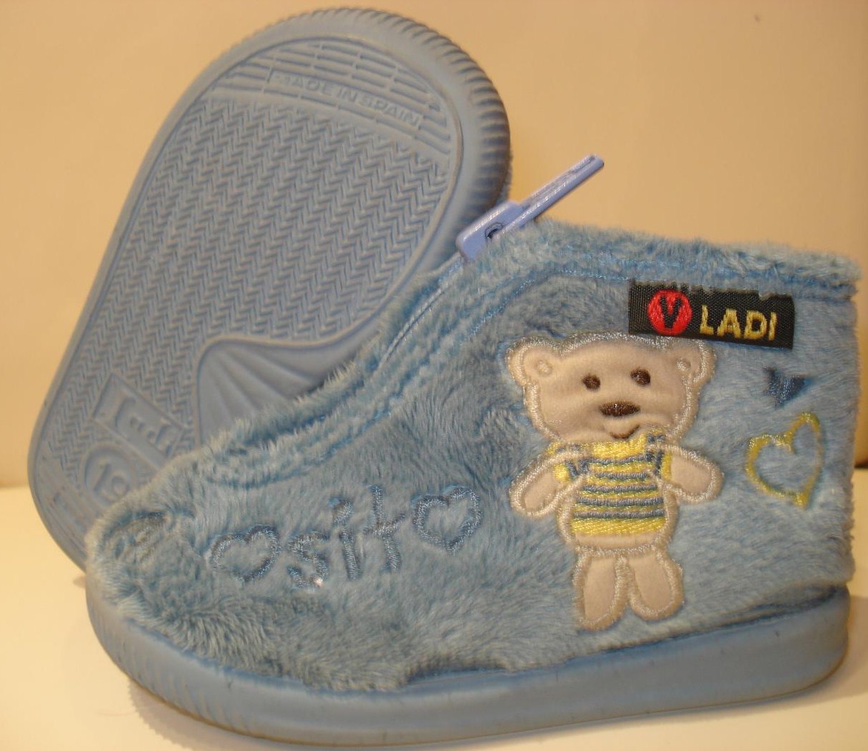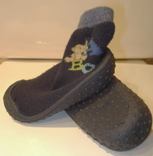 • Al mio le cogí unas como las de cremallera pero en belcro aunque es imposible que se las ponga, no quiere, sólo quiere ir con las de la calle, y cuando se las pongo se las quita ipso facto. Así que siempre suele ir en calcetín, como el piso tiene parquet y además no es un piso frío pues tampoco es tan grave.